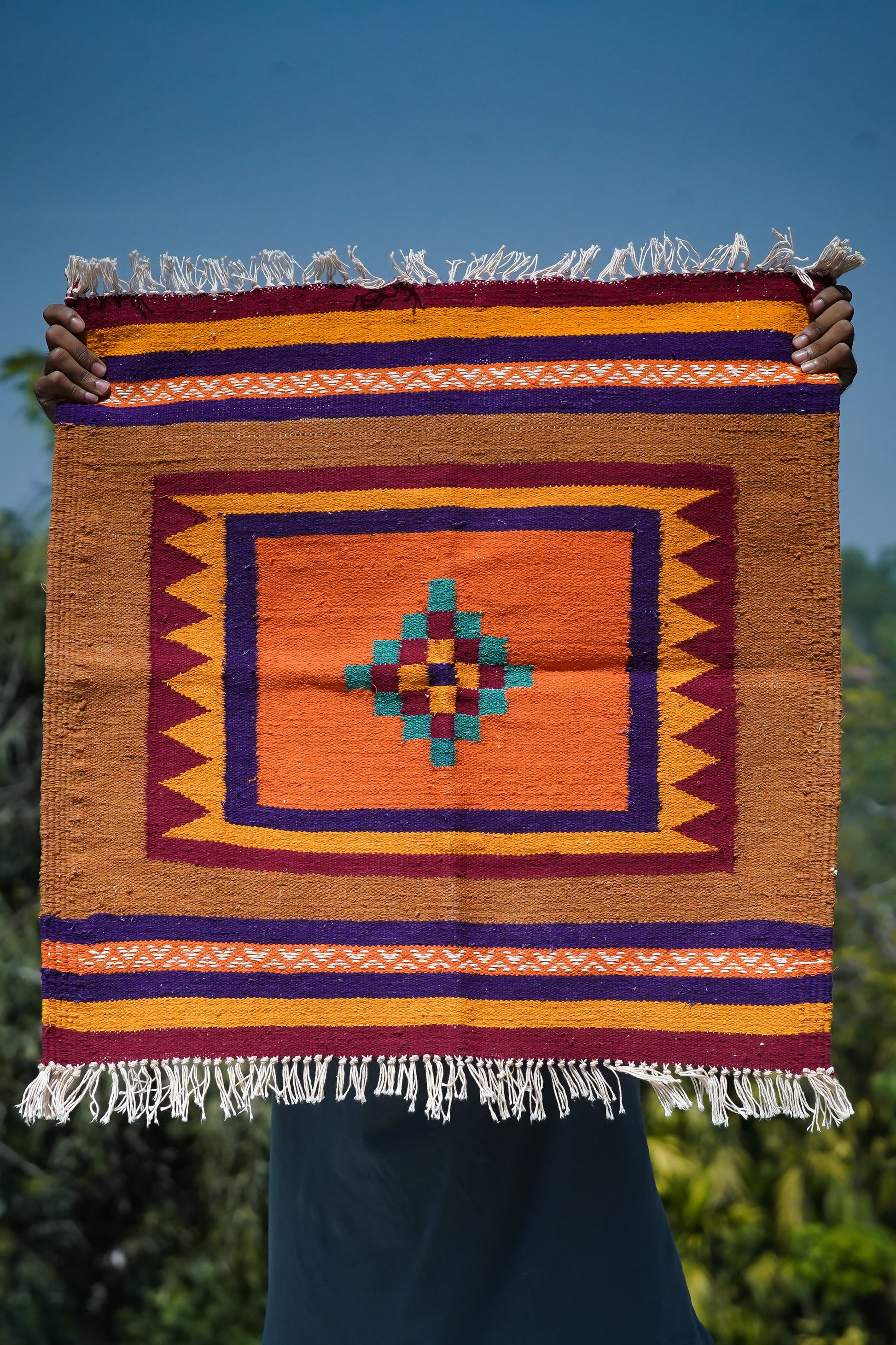 We work directly with artisan communities, one dhurrie typically takes 7–10 days to complete from start to finish.