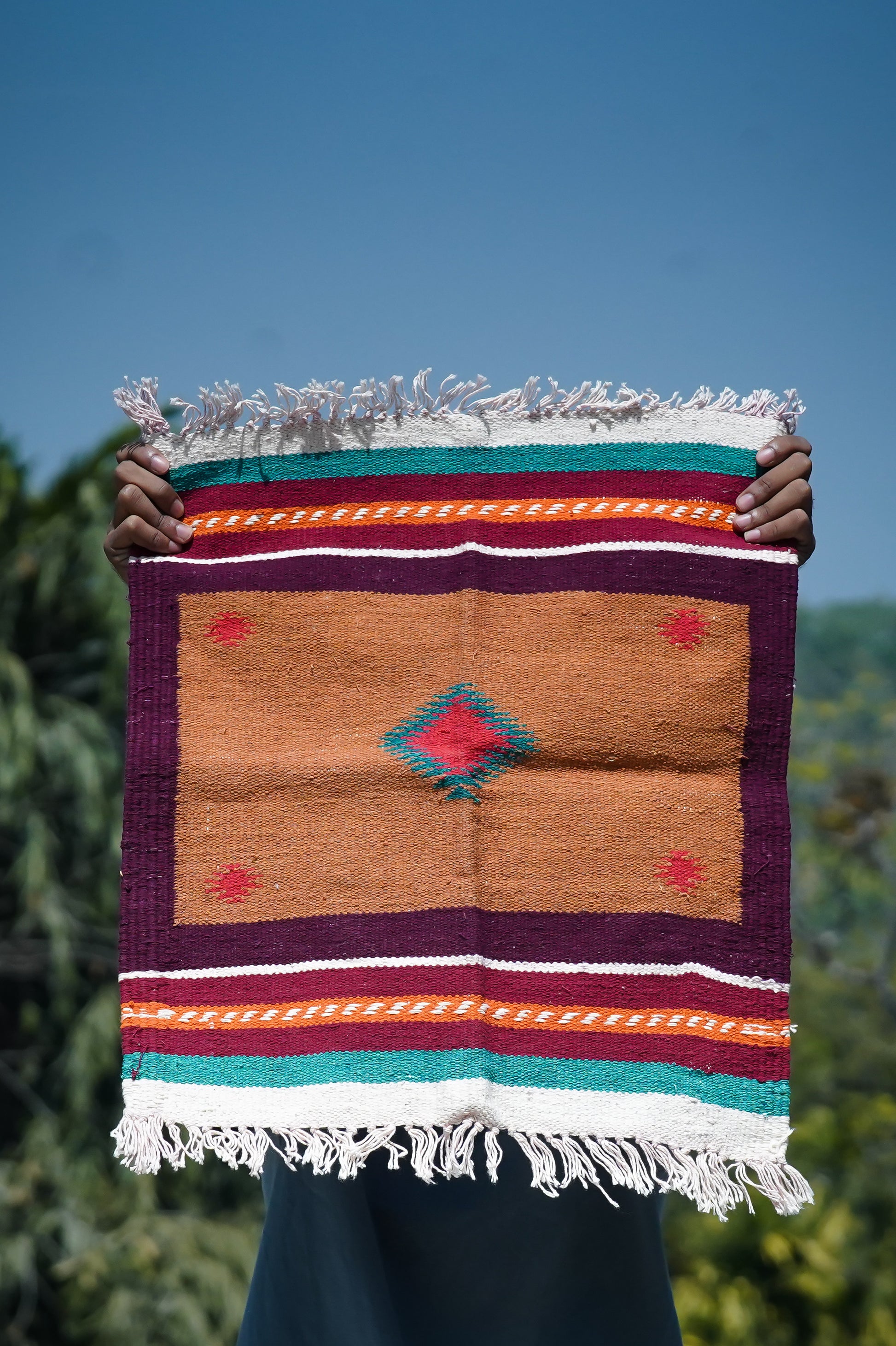 We work directly with artisan communities, one dhurrie typically takes 7–10 days to complete from start to finish.