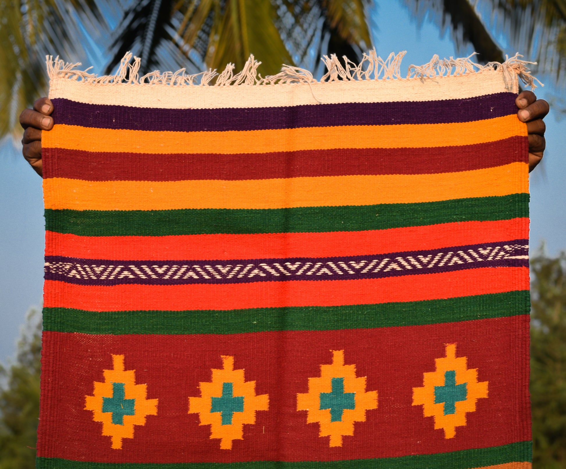 We work directly with artisan communities, one dhurrie typically takes 7–10 days to complete from start to finish.
